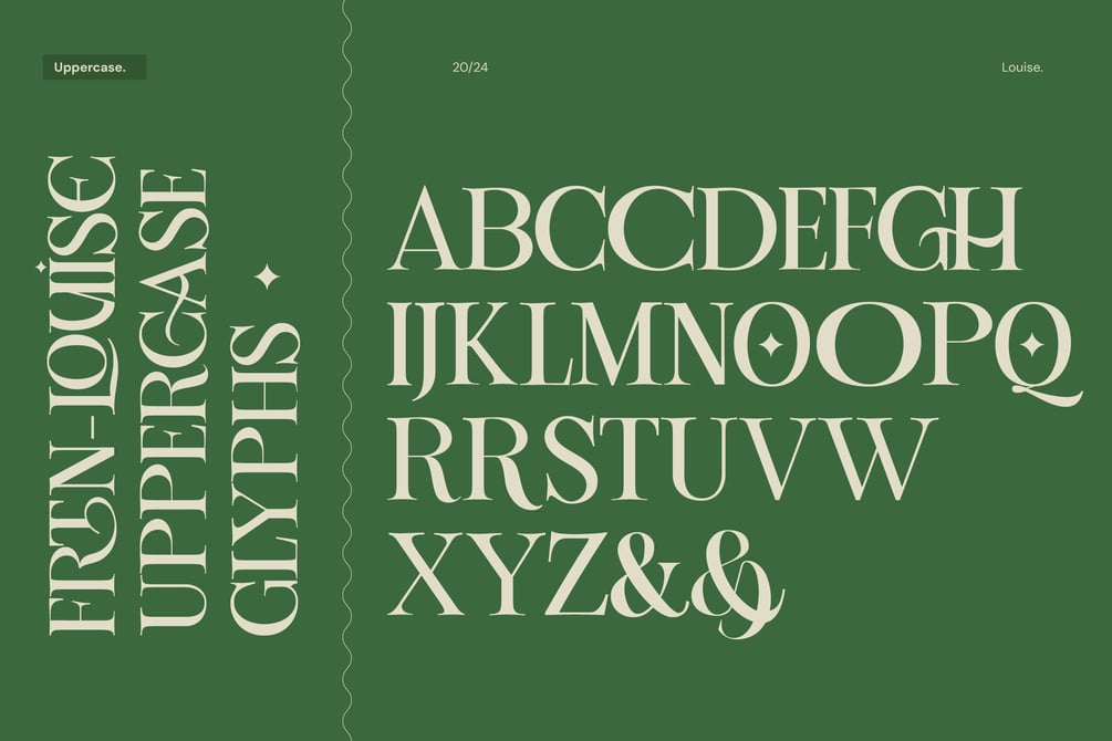 Louise is a serif elegant typeface exudes sophistication and timeless charm. Its refined letterforms feature delicate, graceful serifs, adding a touch of luxury and class. Perfect for formal occasions, high-end branding, or editorial designs, it combines readability with aesthetic appeal. Balanced proportions, thin strokes, and subtle curves give it a regal presence, making it a favorite for evoking elegance and tradition